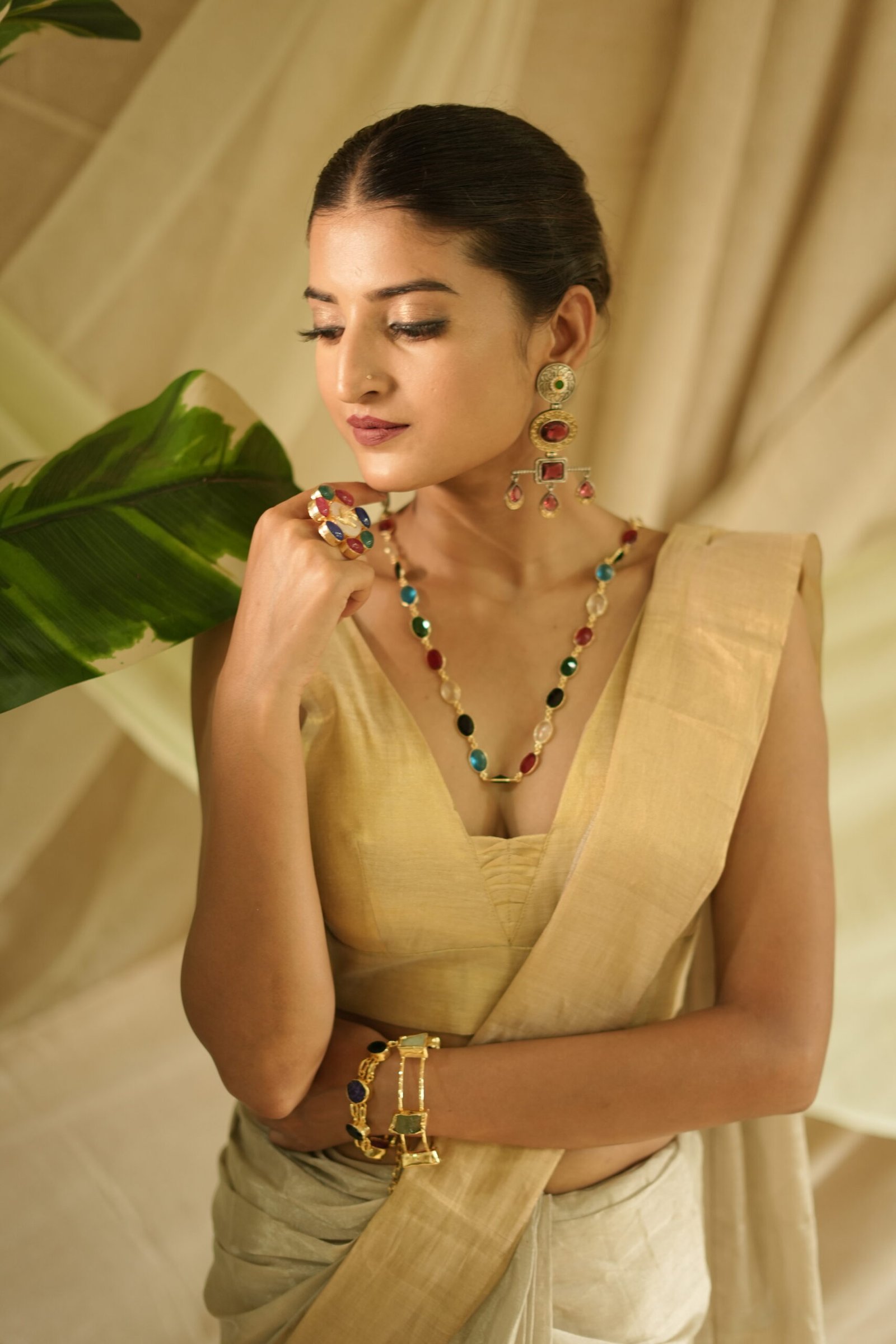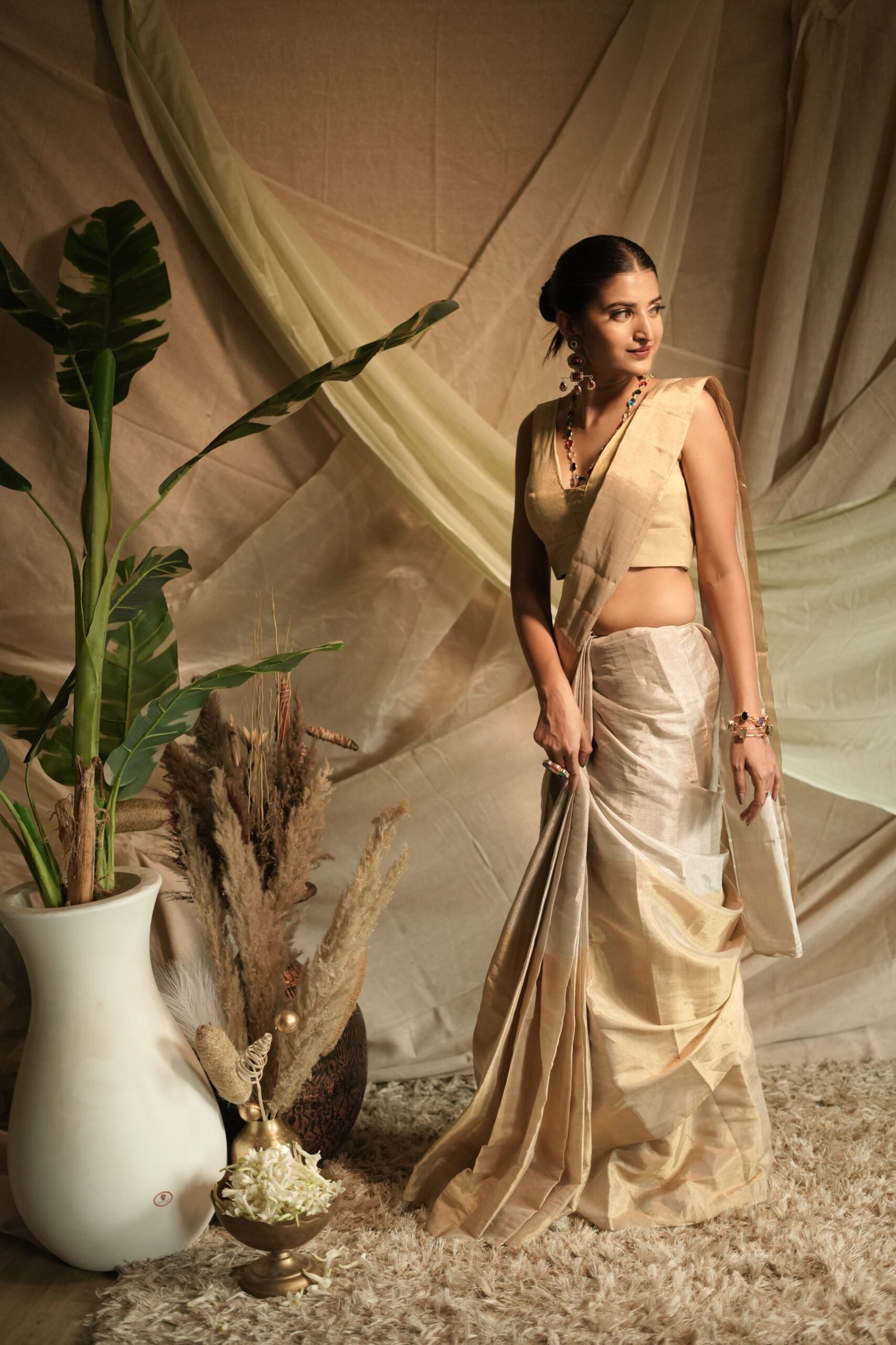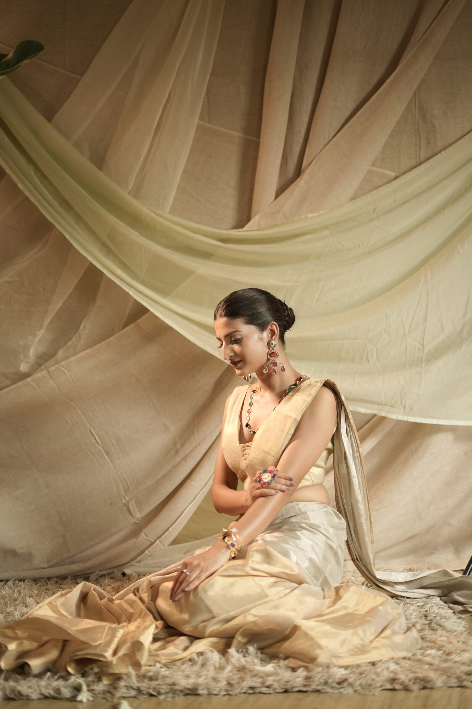 ✔ Set Includes: Saree With Golden Blouse Piece.
