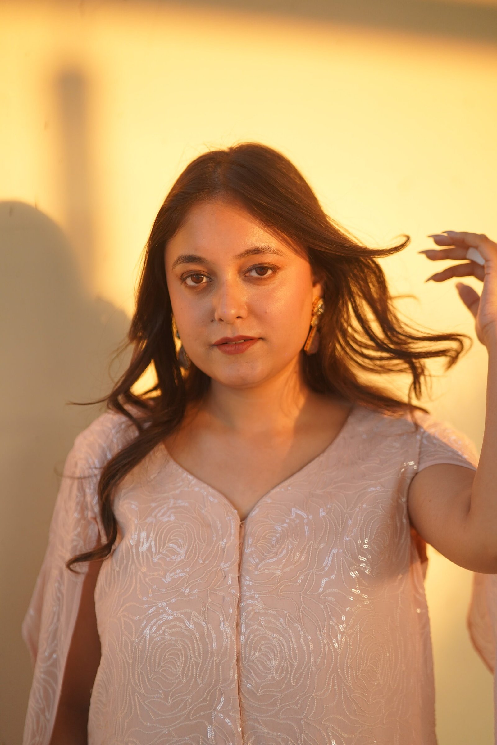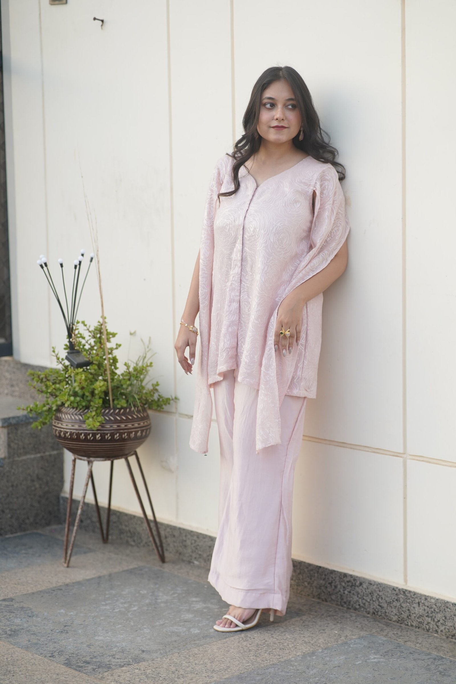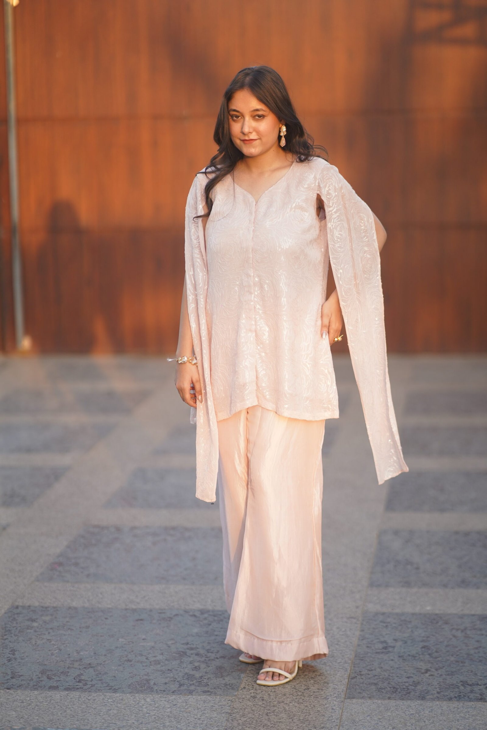 ✔ Design: Indo-Western Fusion With Dramatic Sleeves.